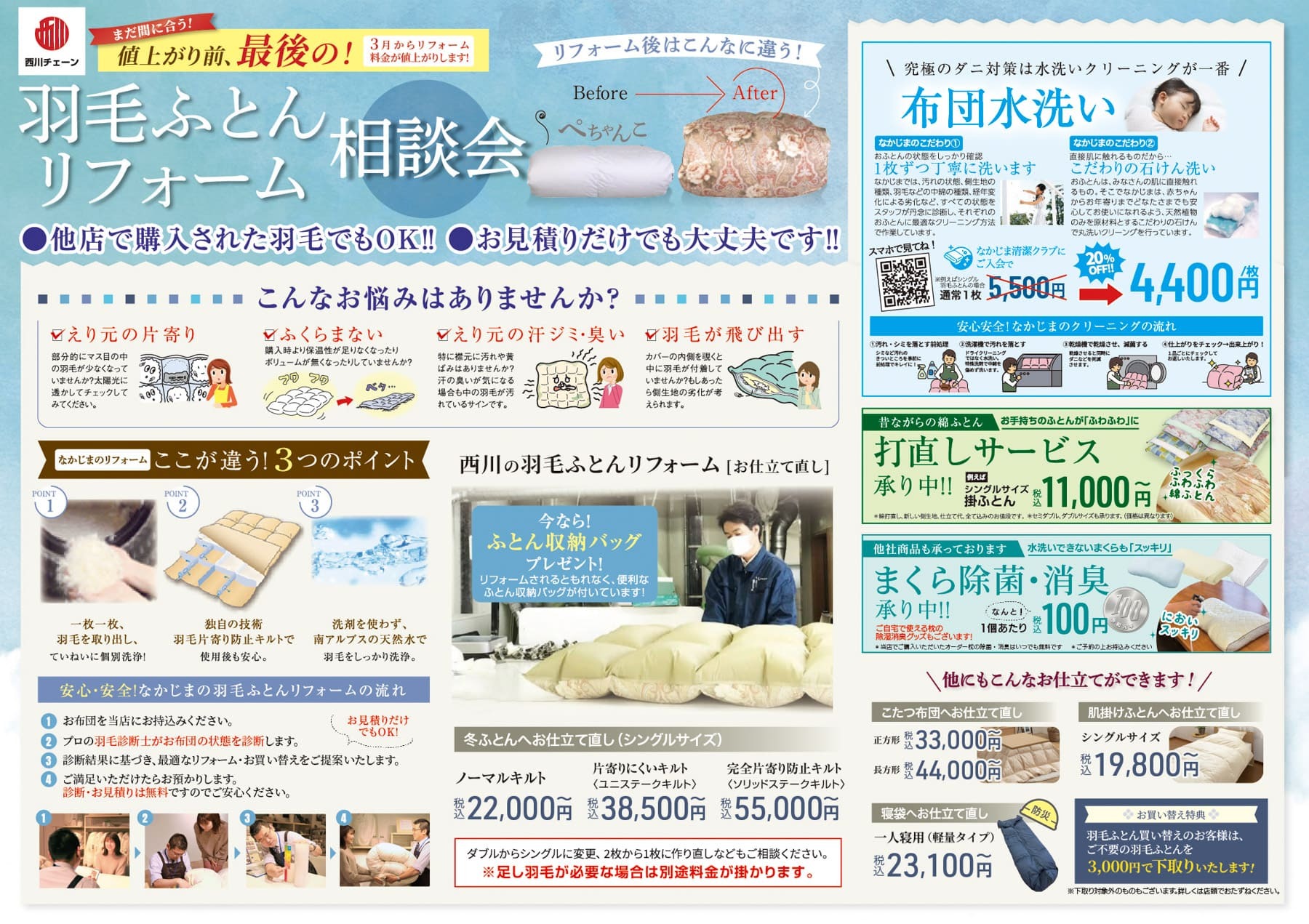 【橿原店/2.10~2.28】値上げ前最後の羽毛リフォーム