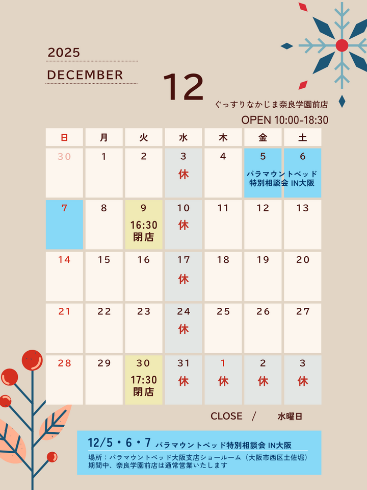 HOME > フェア・お知らせ > お知らせ > ぐっすりなかじま営業日カレンダー《イベント・キャンペーン一覧》