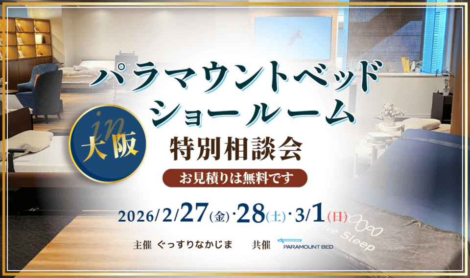 HOME > フェア・お知らせ > イベント > 【2.27-3.1】大阪/パラマウントベッドショールームに特別ご招待《3日間限定》