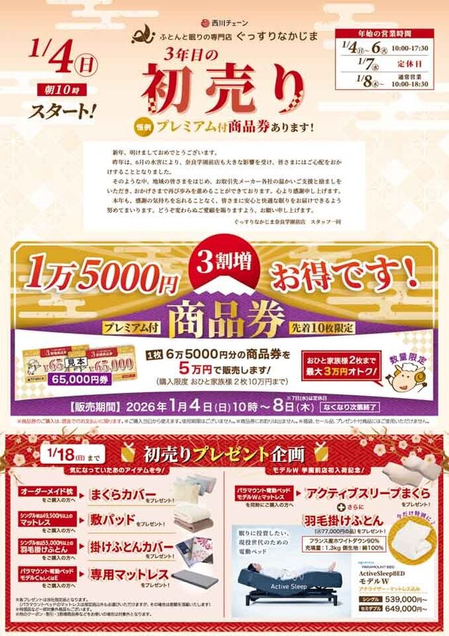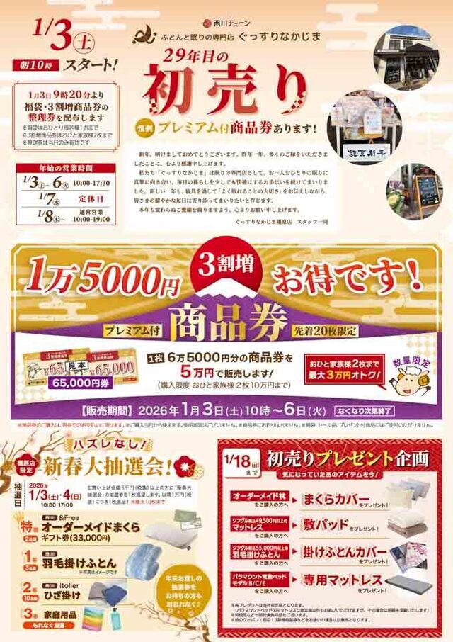 ※3日9:20より店舗前で福袋・3割増商品券の整理券を配布いたします(当日のみ有効)