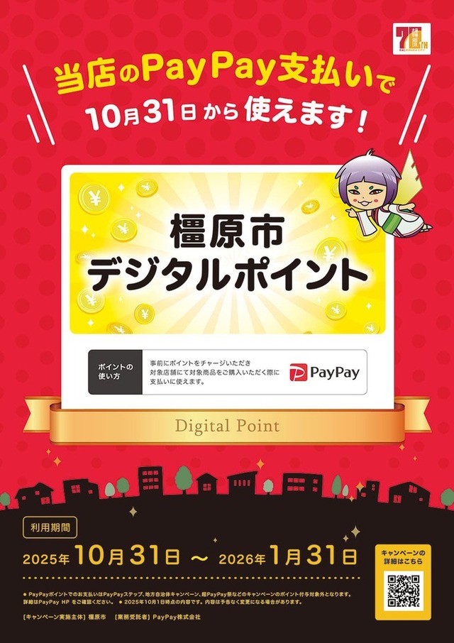 【10.31~1.31】橿原市デジタルポイントがご利用いただけます