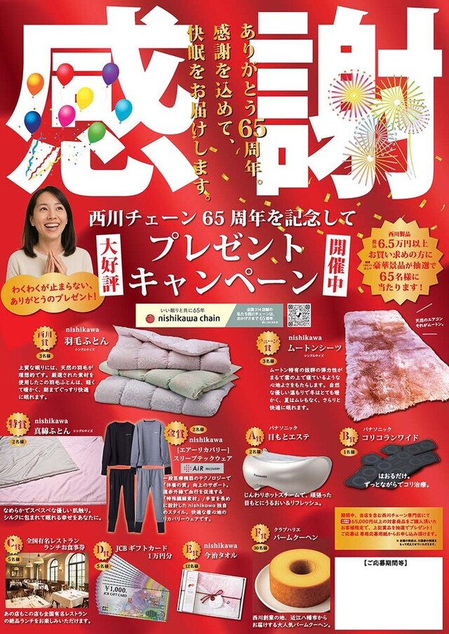 【12.1~1.11】西川チェーン65周年 感謝のプレゼントキャンペーン
